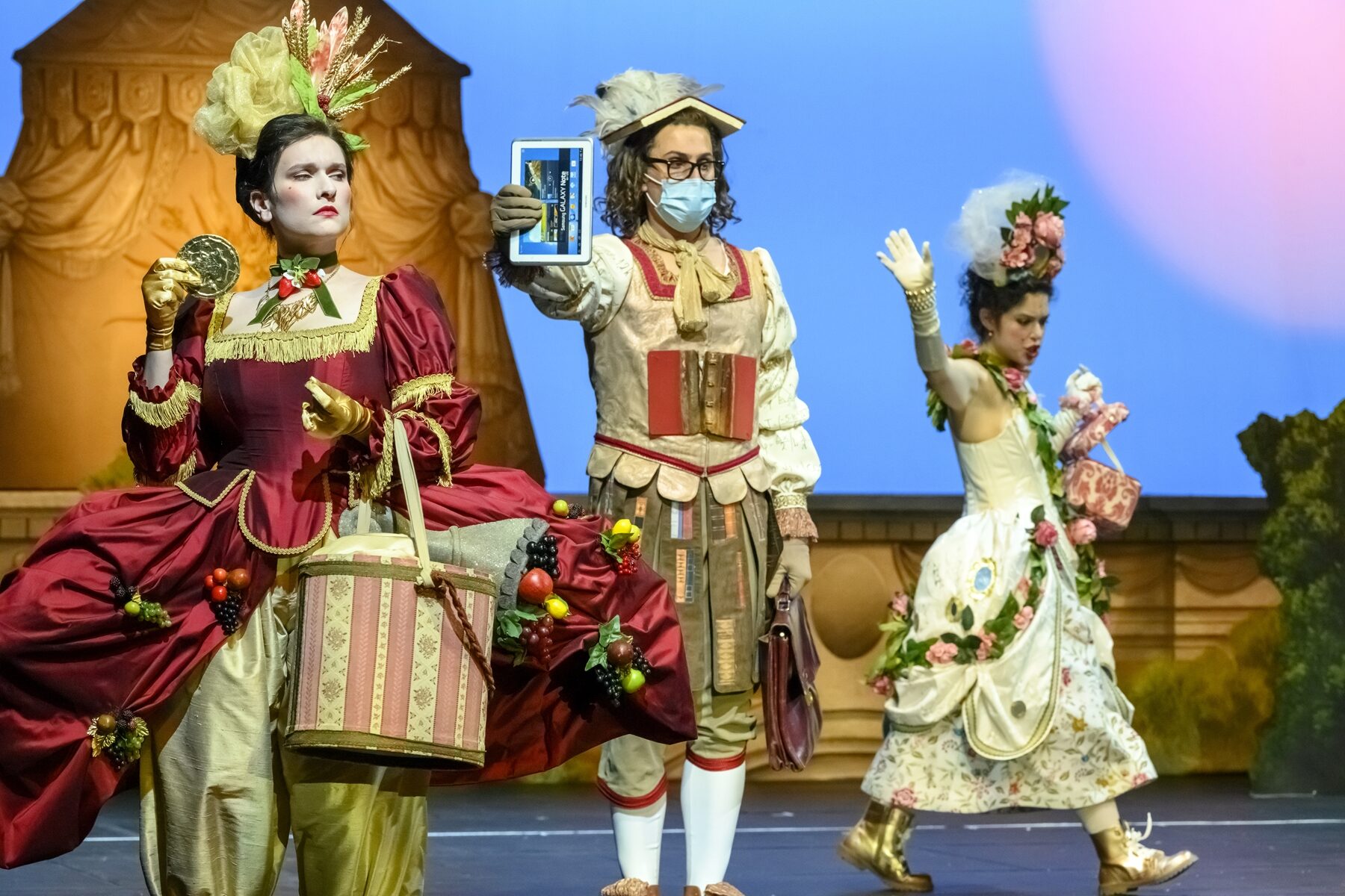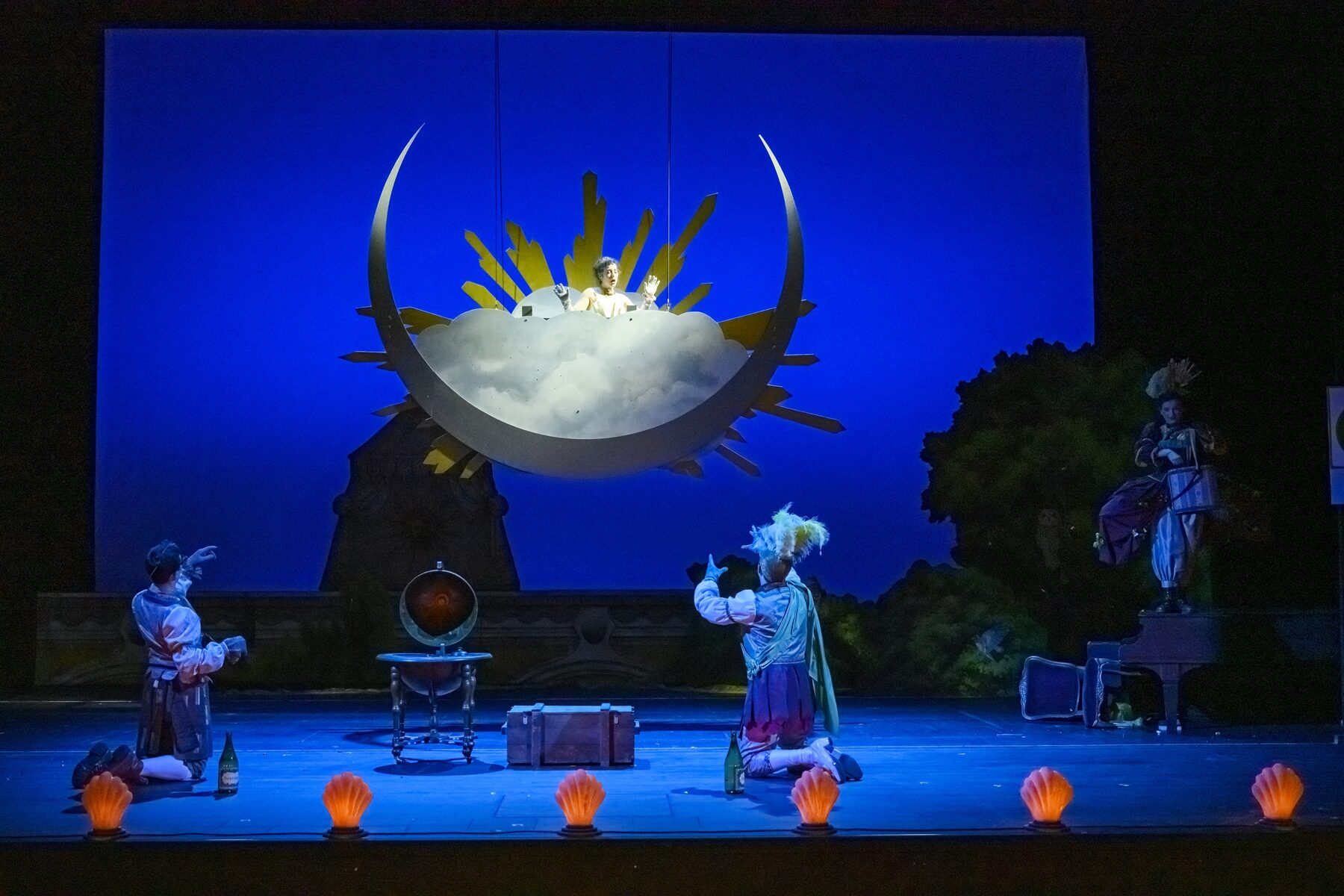 François De Carpentries und Karine Van Hercke, langjährige künstlerische Weggefährten des Theaters und versierte Kenner des Mozart-Repertoires, begeben sich mit den jungen Sängerinnen und Sängern des Opernstudio Niederrhein auf die Suche nach den Besonderheiten im kompositorischen Schaffen Mozarts jenseits der ausgetretenen (Opern-)Pfade. Nach einer schrecklichen Pandemie landen vier Götter auf der Erde um den Menschen zu Hilfe zu kommen. 18. Jahrhundert und Science Fiction verschmelzen in surrealen Bildern zu einem unterhaltsamen Musiktheaterabend, der die unbekannte Seite des gehypten Weltstars der Wiener Klassik auf einen erfrischend neuartigen Prüfstand stellt.
