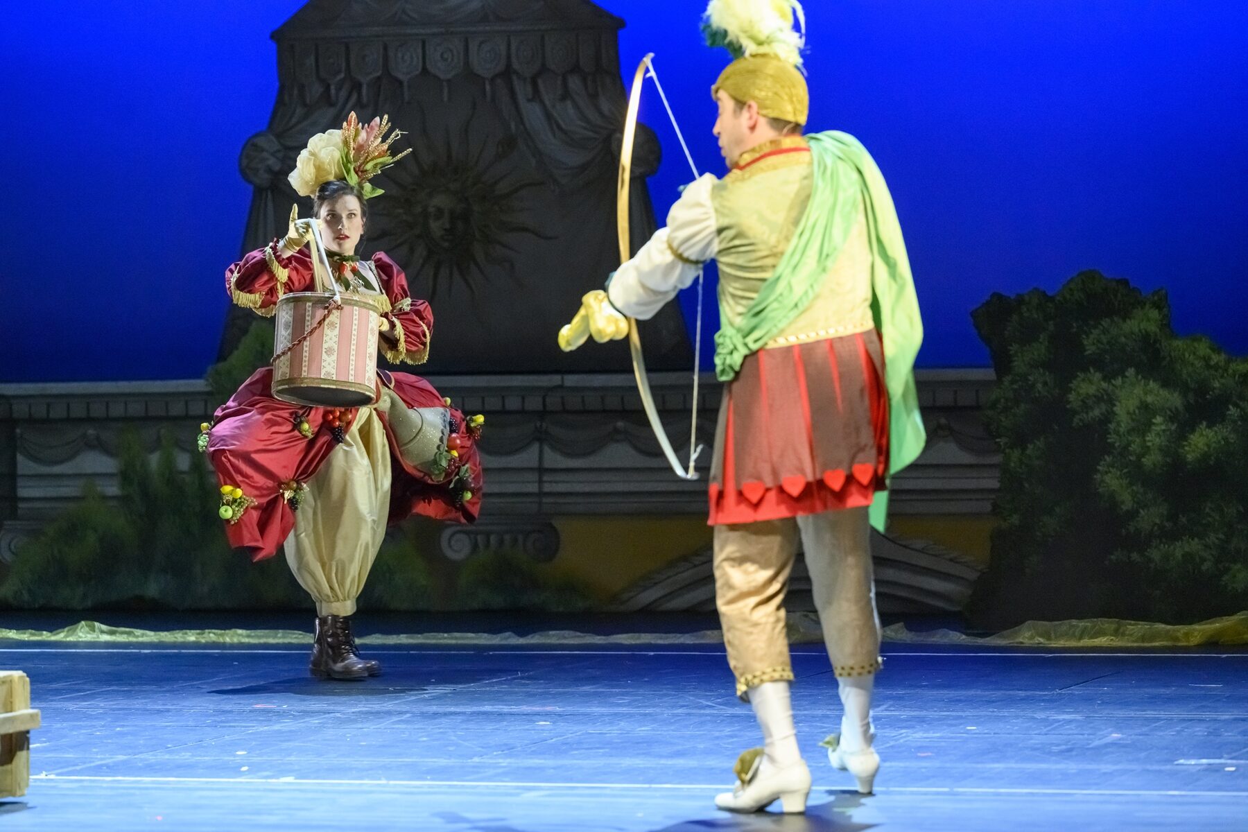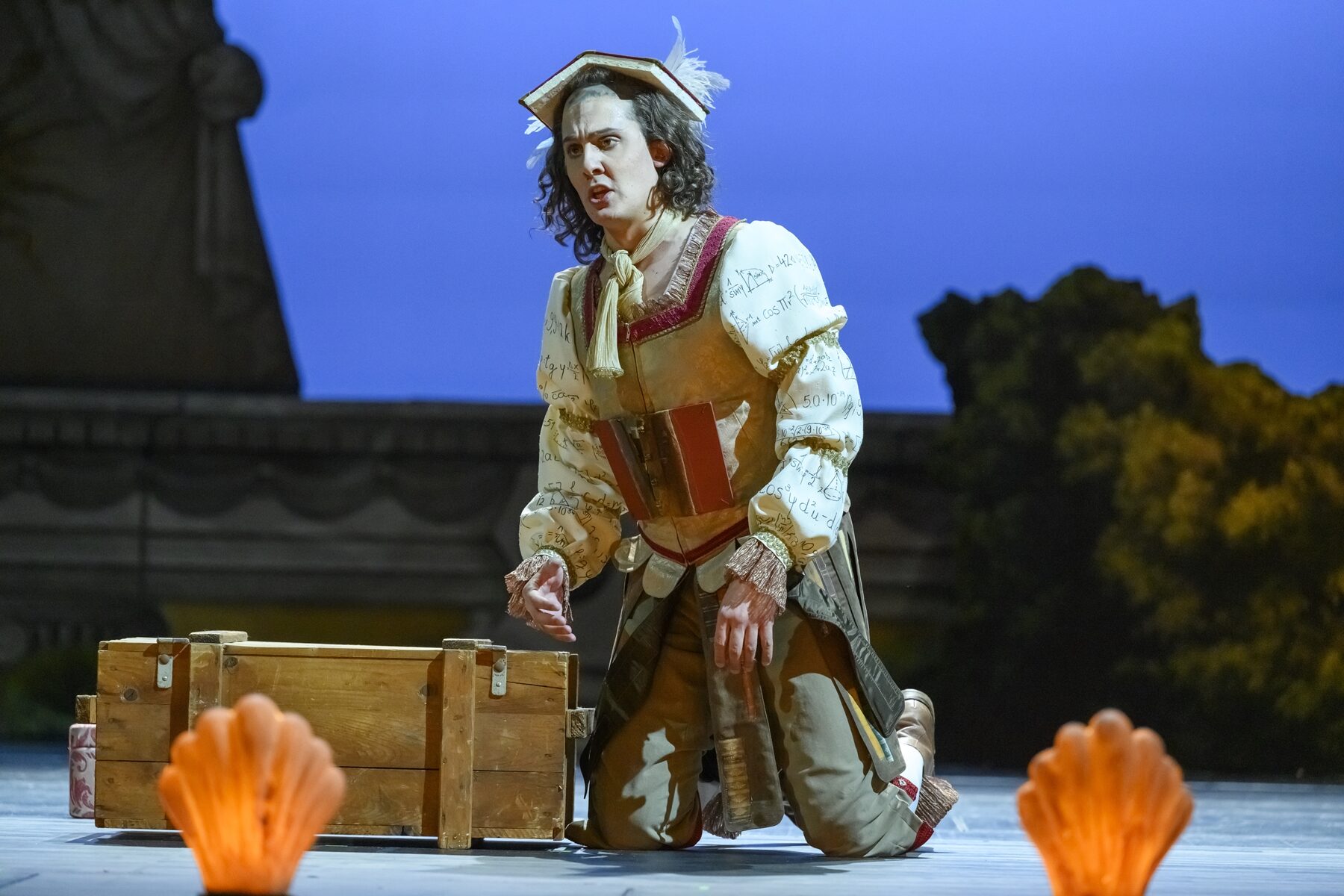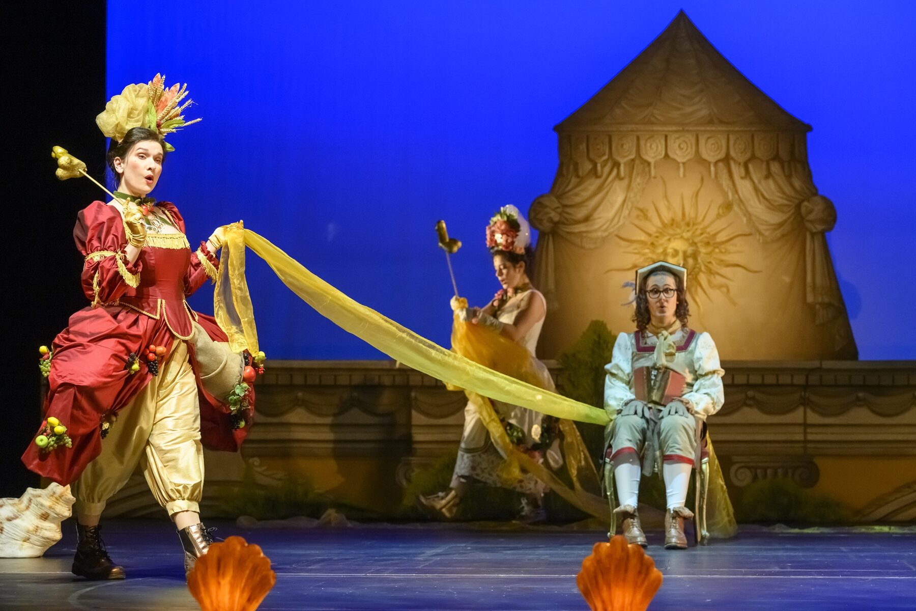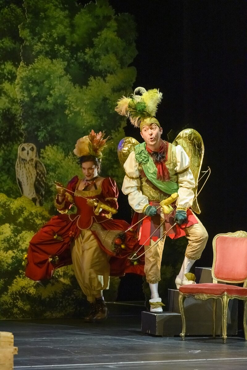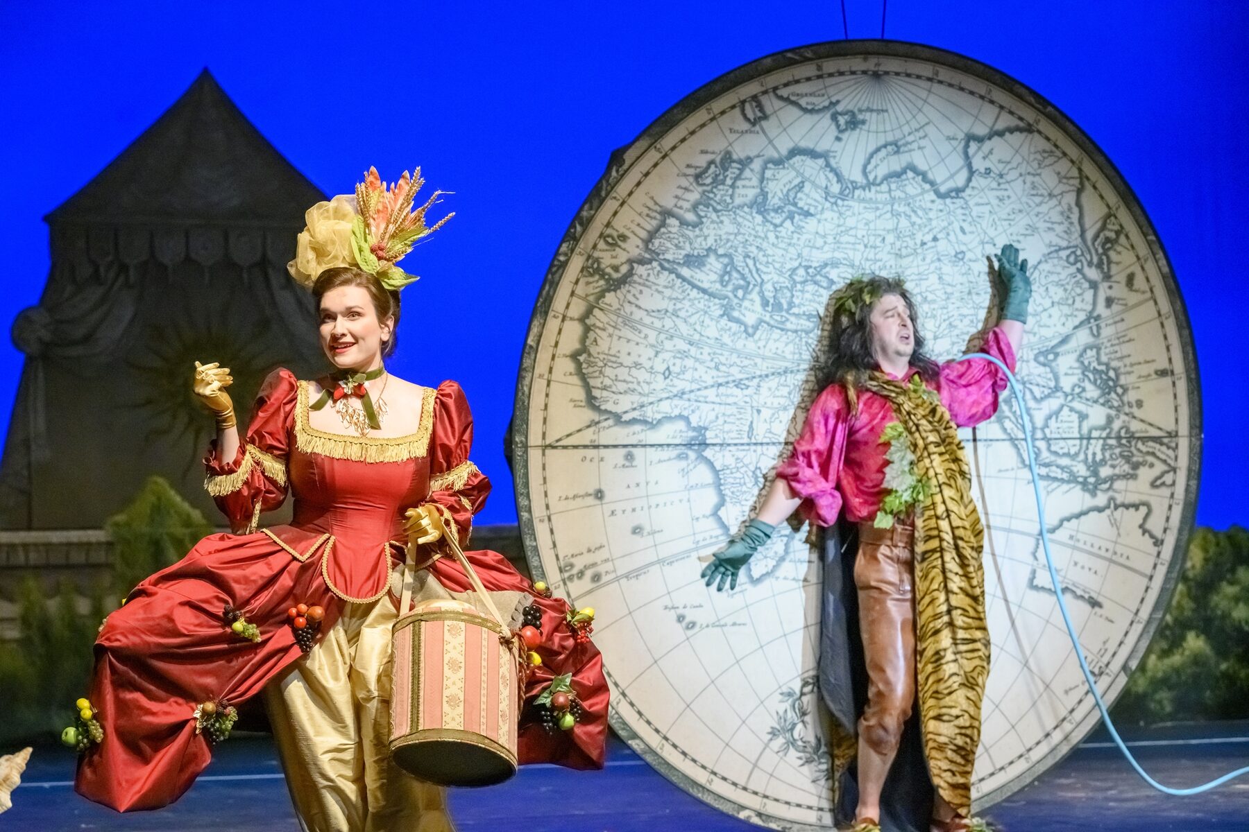 Das Premierenpublikum zeigte Herden-Amüsierwilligkeit. (…) Avishay Shalom hat den Stücken, zu denen selten die komplette Partitur erhalten war, fidele Arrangements verpasst. Er dirigiert die auf etwa ein Dutzend Instrumente reduzierten Niederrheinischen Sinfoniker, die einen Klangteppich von erstaunlicher Maschendichte auslegen. (…) Karine Van Hercke hat Bühne und Kostüme mit barocker Opulenz bedacht. Der Blick kann sich verlieren in zahllosen Blumen, Spiegeln, Früchten, Federn und Volants. (…) Boshana Milkov ist als Fortuna immer ladylike und trotz des Handicaps einer Erkältung stimmlich gefestigt. Ihr Mezzo kommt in Soloarien fein zur Geltung. Das Feuerwerk auf der Bühne ist Maya Blaustein, die als Bellezza leuchten kann. Das Duett der Frauen zählt zu den großen Momenten. Die Rolle des Spirito, des Intellektuellen, fürs Weltliche Unbegabten füllt Guillem Batllori mit reichem Mienenspiel und warmem Bassbariton, der wunderbar zu Tenor Robin Grunwald passt. Als Gott Amor, der sich immer überschätzt, kostet er auch die schauspielerischen Möglichkeiten aus.